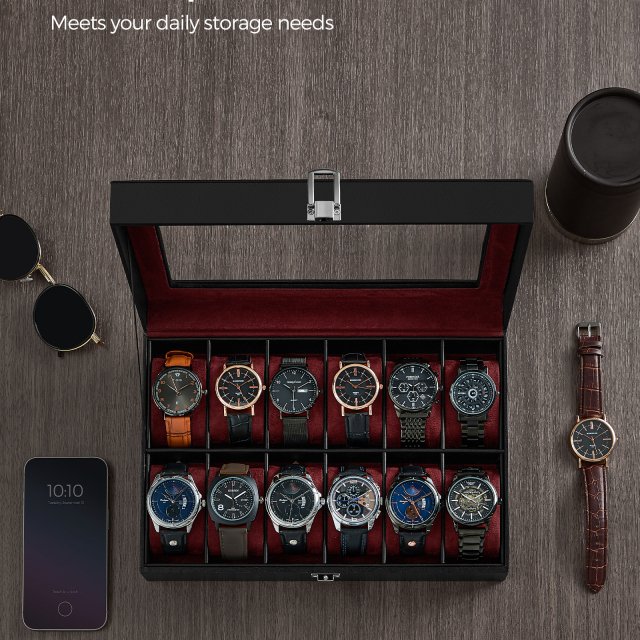 • Ample Storage: Holds up to 12 watches in individual padded slots.